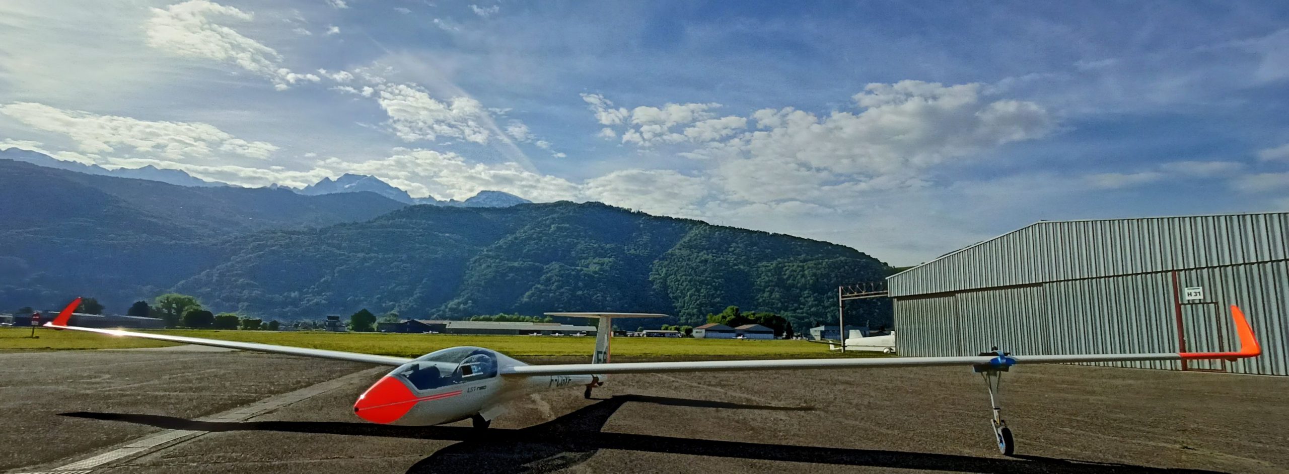Abholung und Rückgabe am Flugplatz Grenoble Le Versoud, LFLG (Frankreich, Nordalpen).